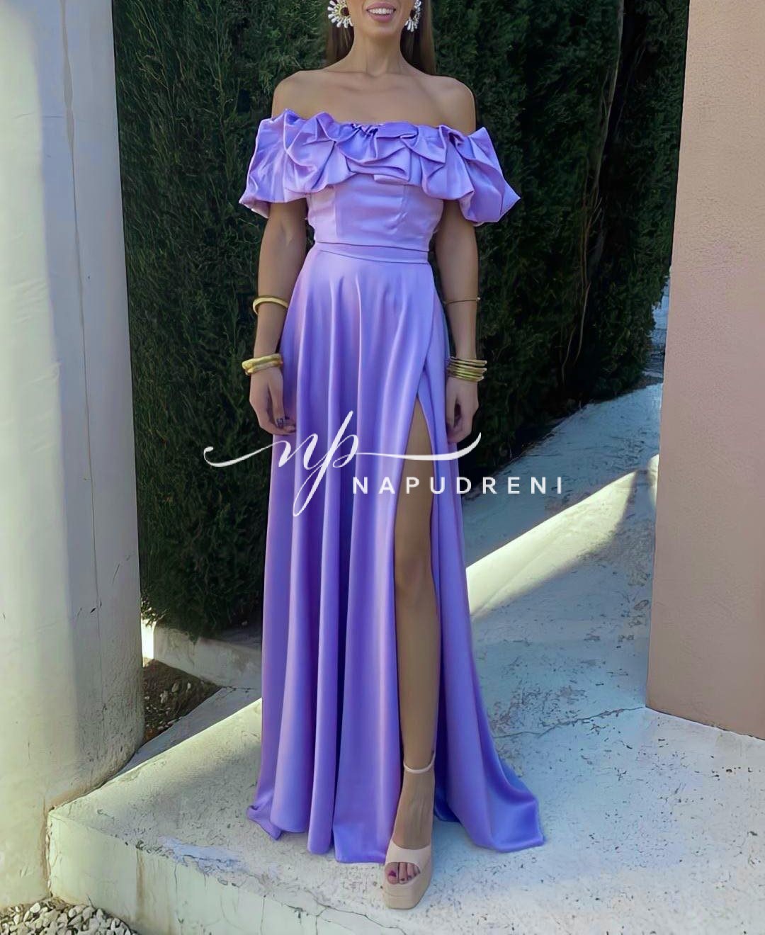 Дамска сатенена рокля “Vision” в лилав цвят – код 7253