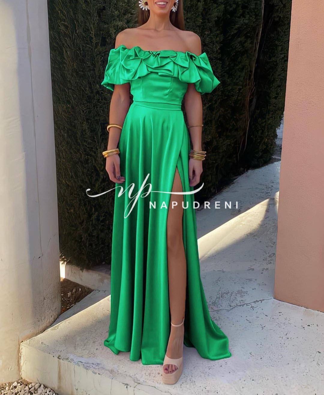 Дамска сатенена рокля “Vision” в тъмнозелен цвят – код 7252