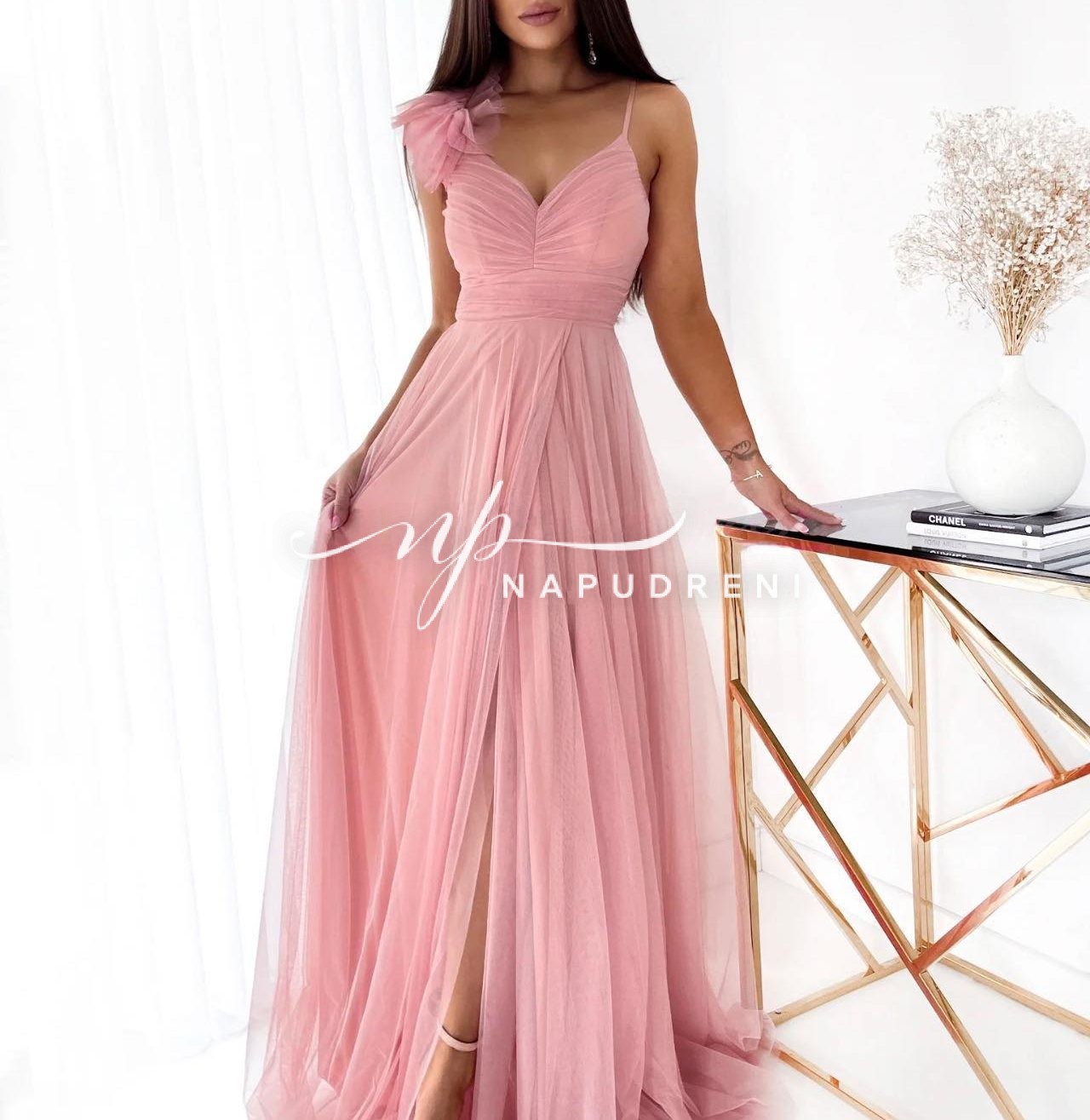 Дамска тюлена рокля “Venera” в розов цвят – код 6834