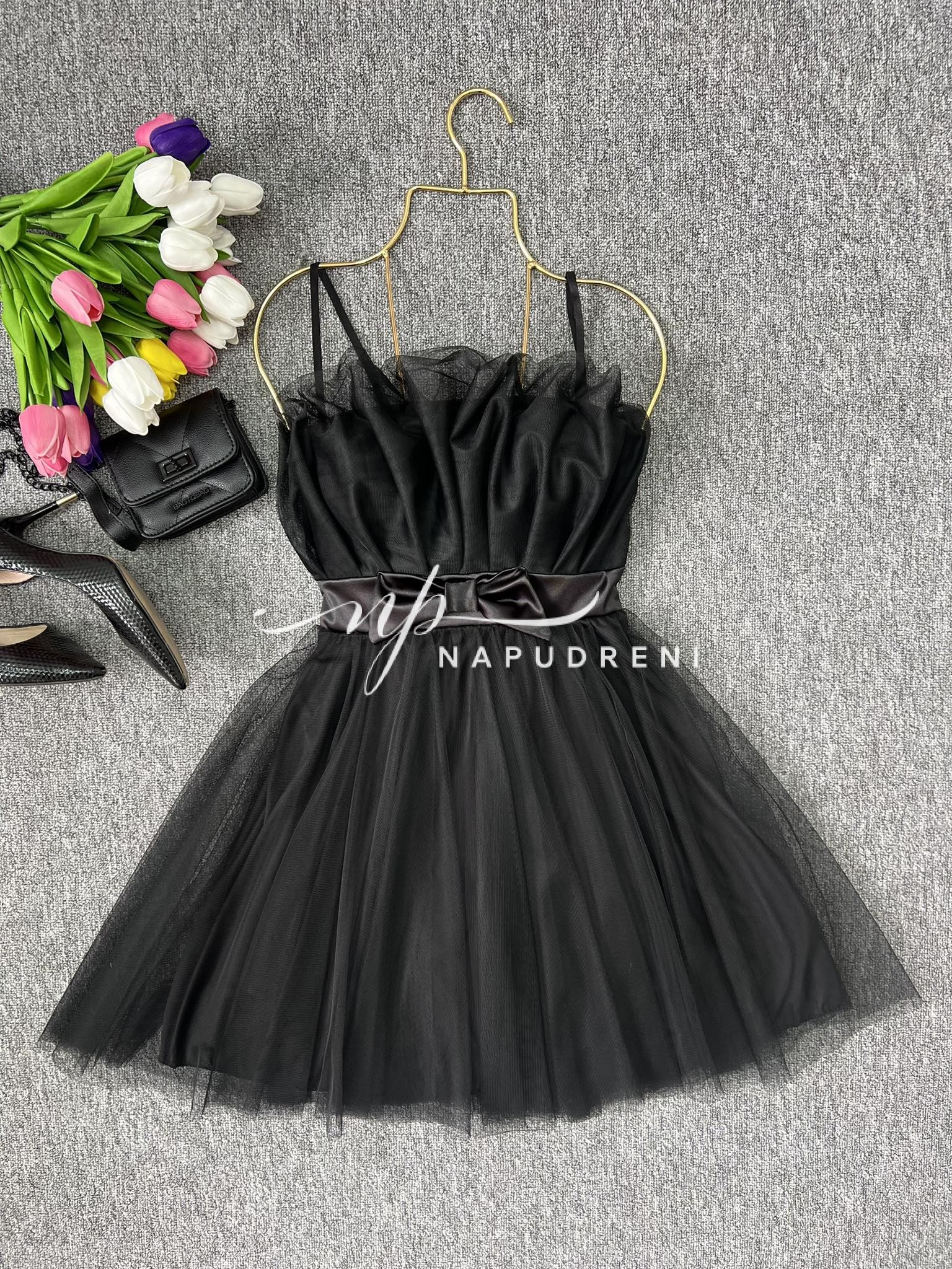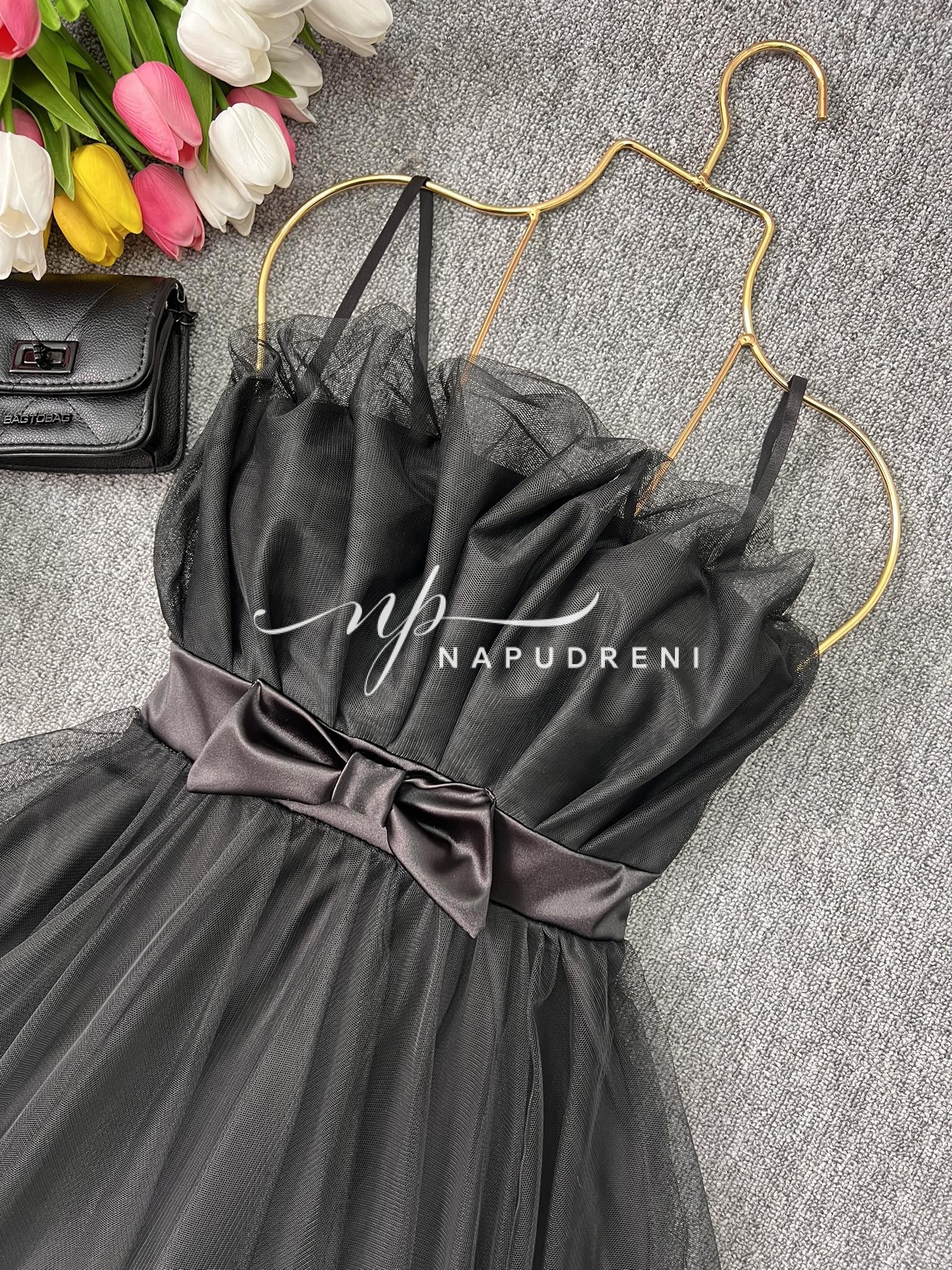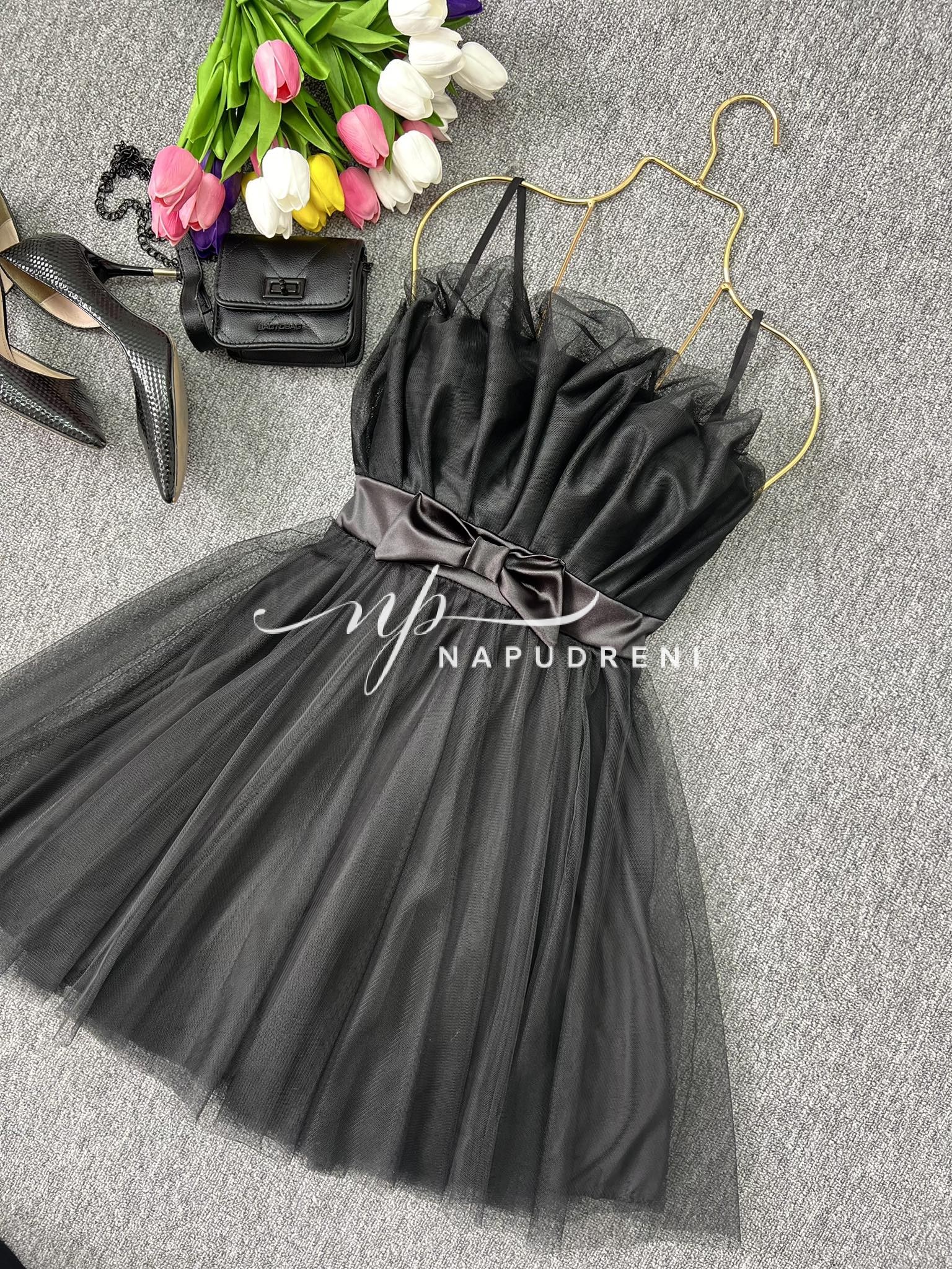 Кокетна дамска рокля с тюл в черен цвят – код 7024