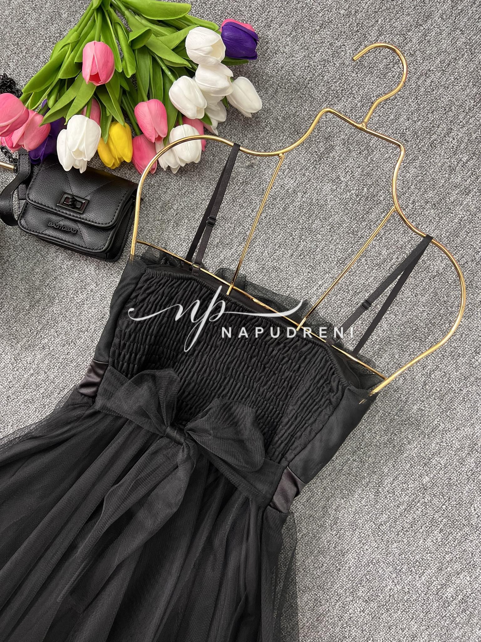 Be the first to review “Кокетна дамска рокля с тюл в черен цвят – код 7024”