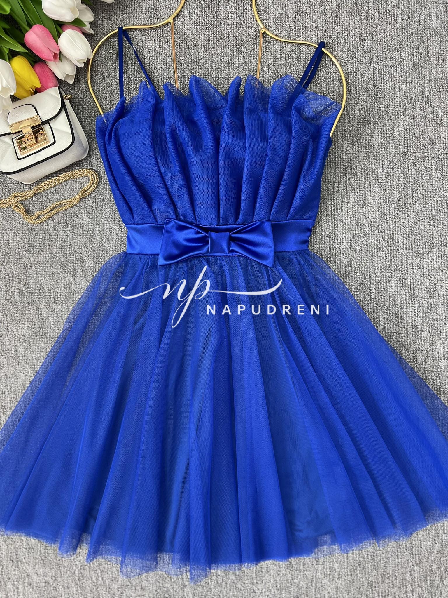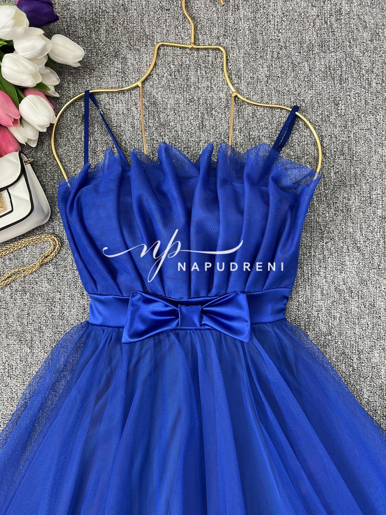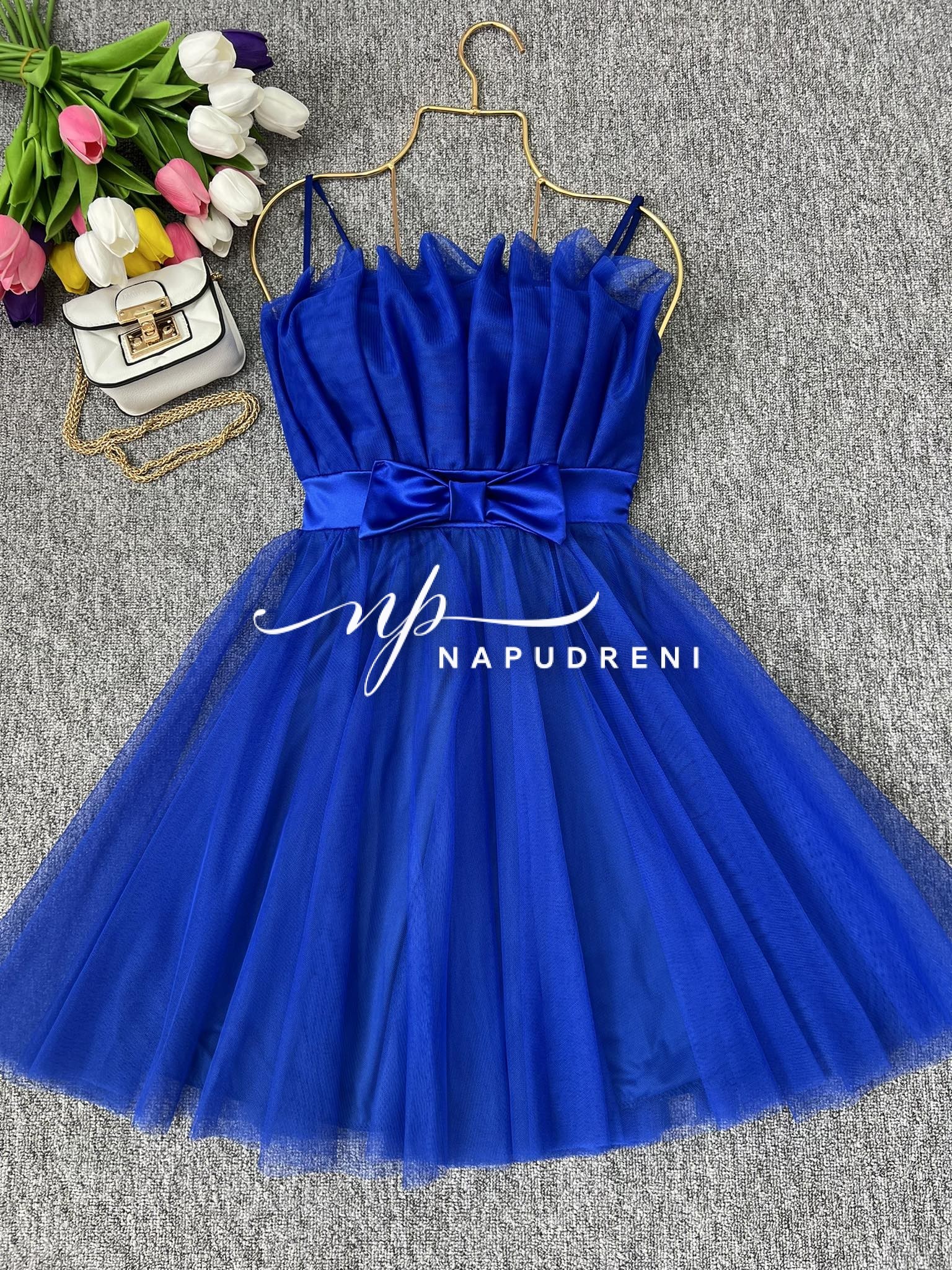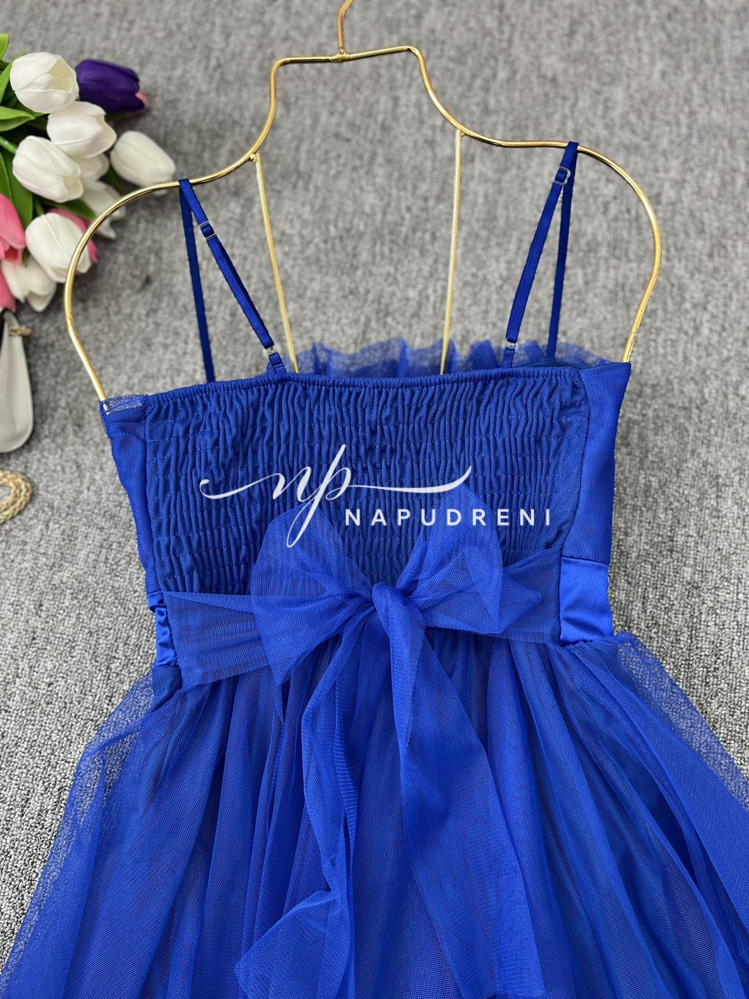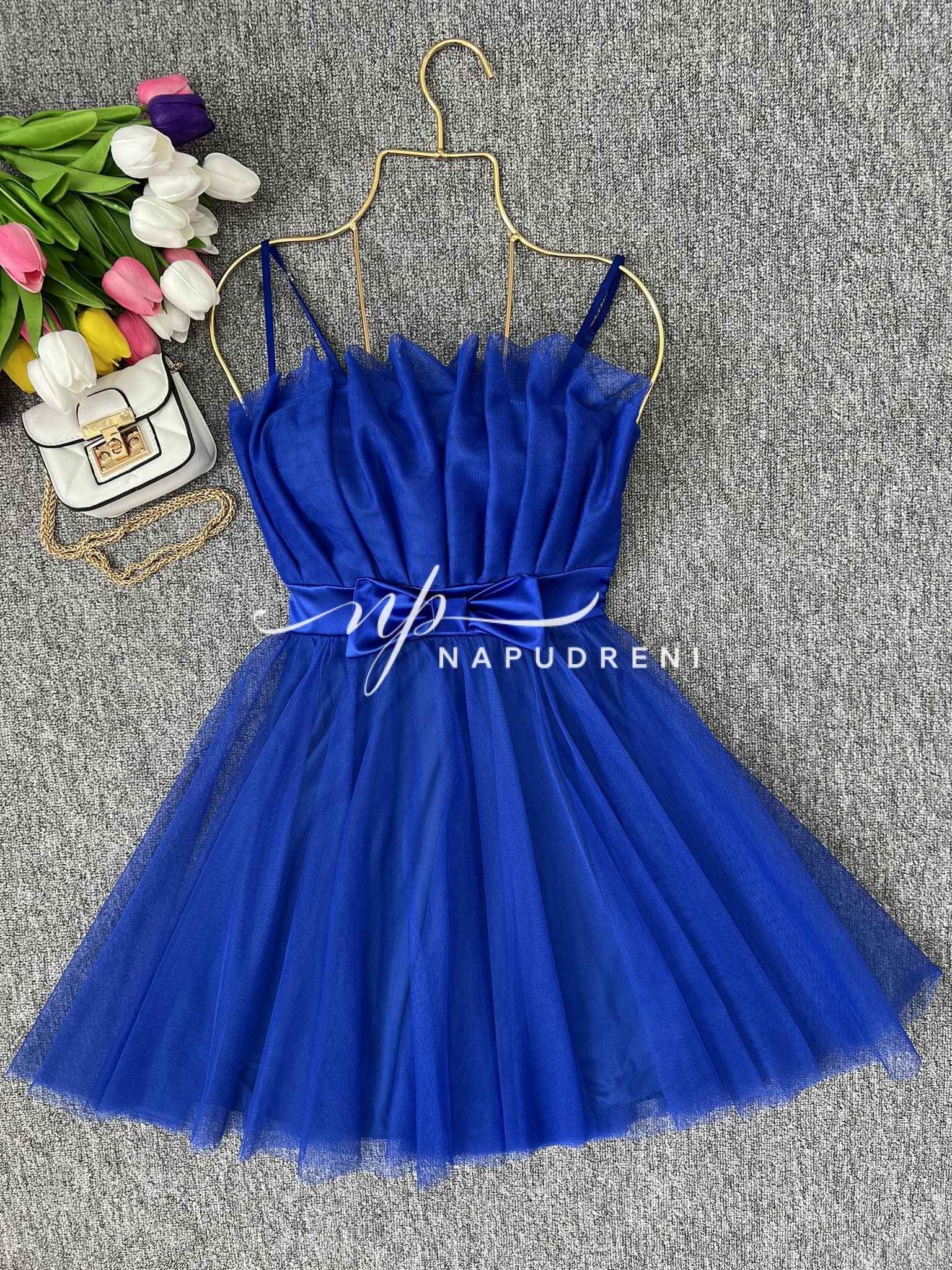 Кокетна дамска рокля с тюл в тъмносин цвят – код 7027