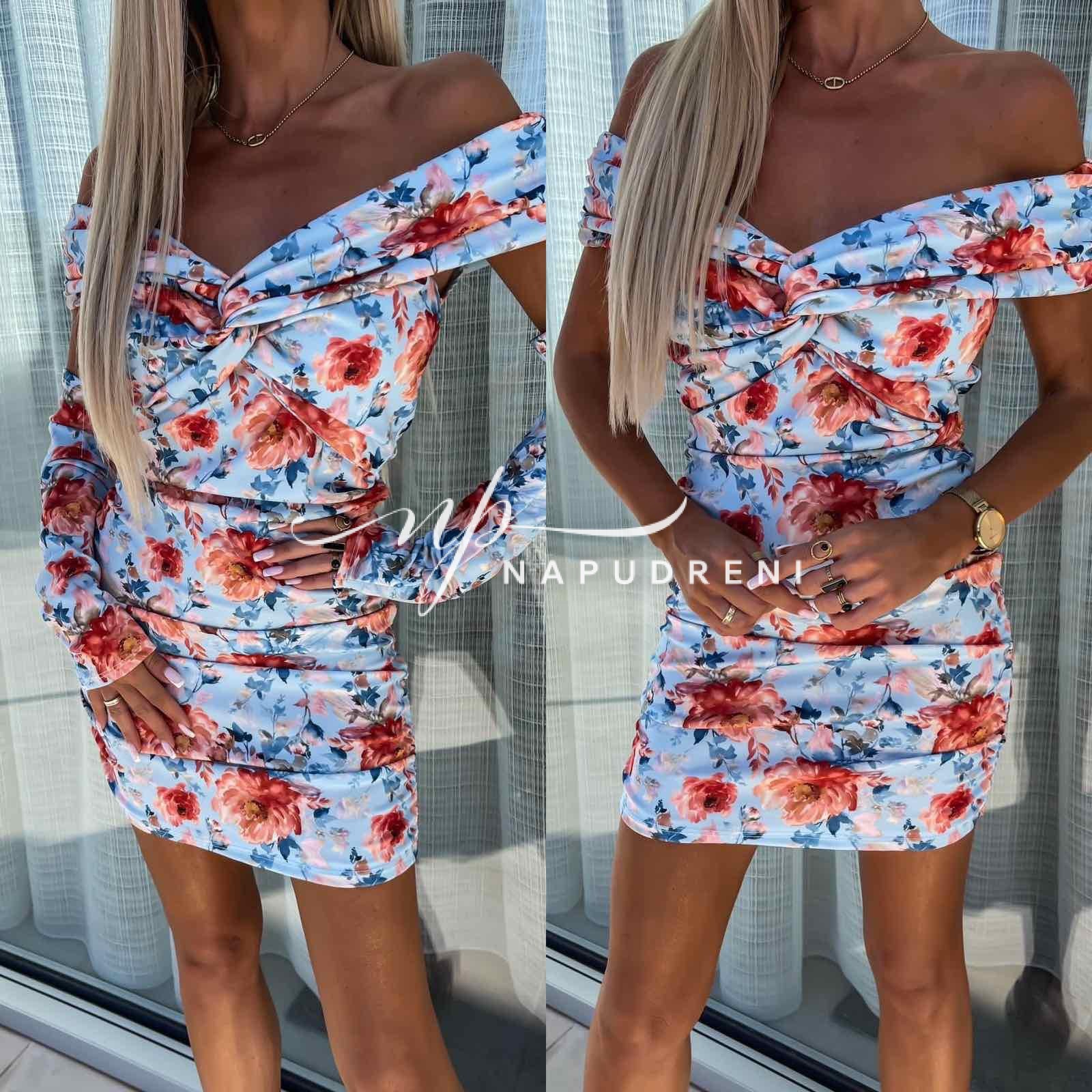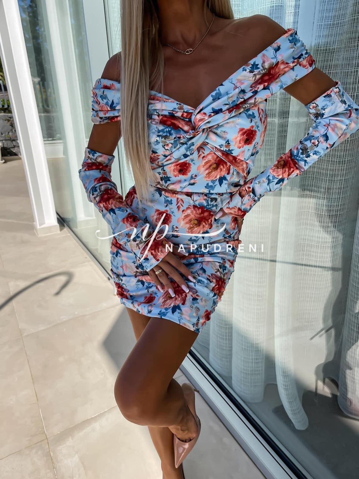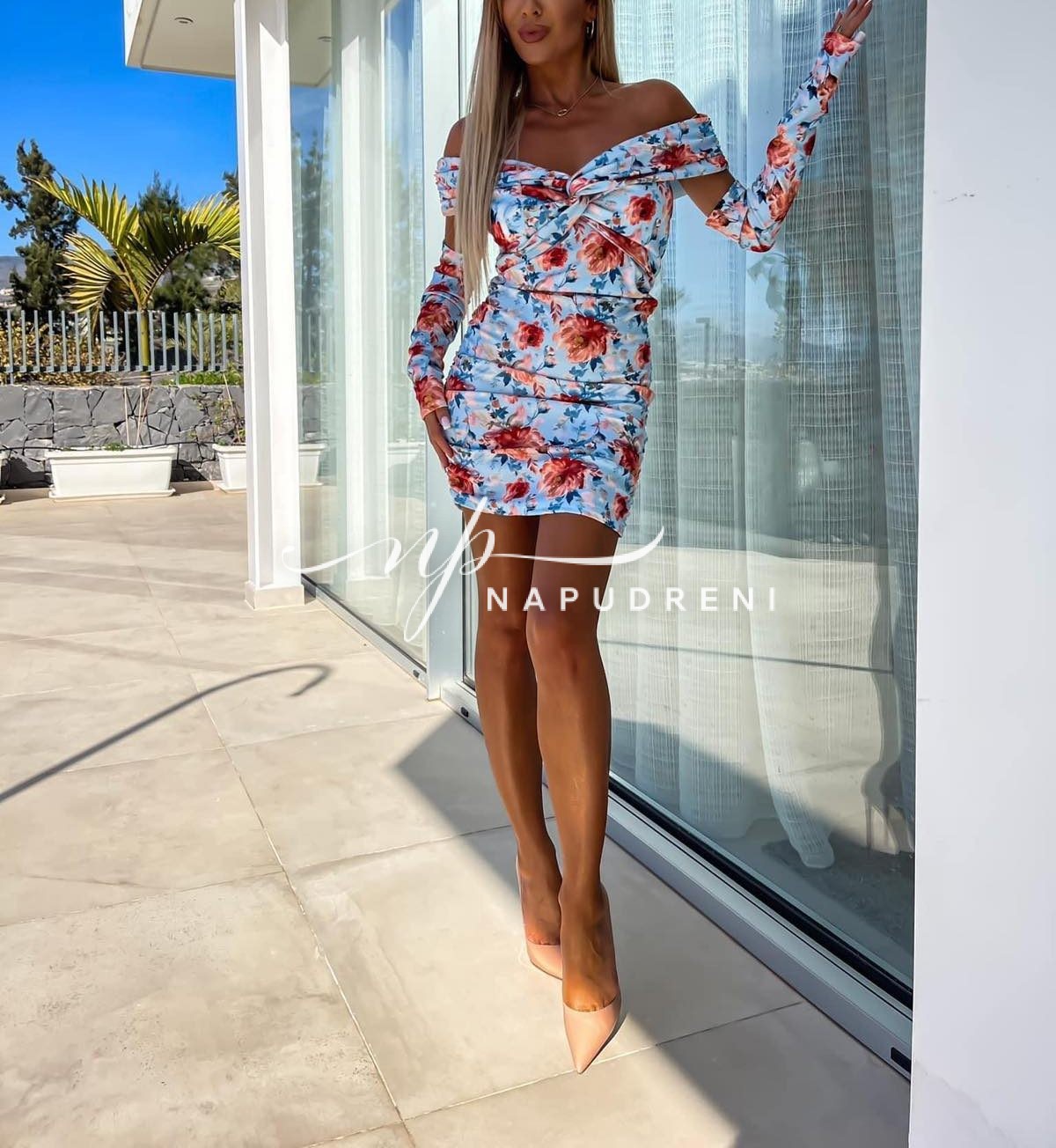 Кокетна рокля с допълнителни ръкави в син цвят – 6933