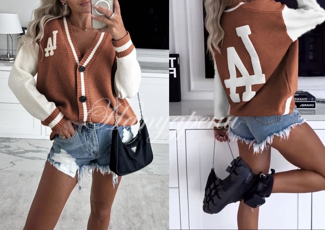Дамска жилетка “LAngeles” в цвят керемида на бели кантове – код 6112